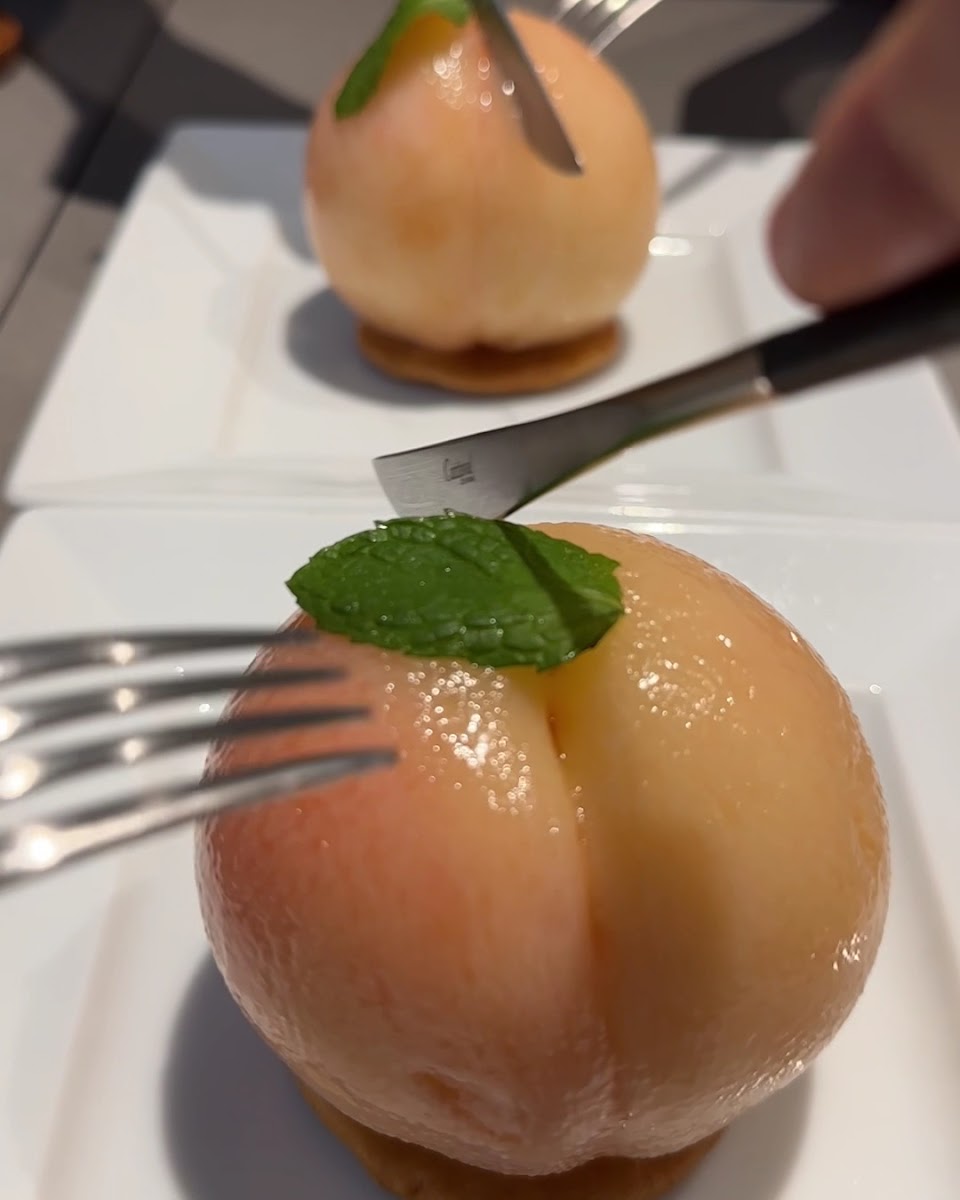 - Sweet Treats – Seasonal delights like whole peach mousse and luxurious panna cotta, celebrating the essence of summer fruits.